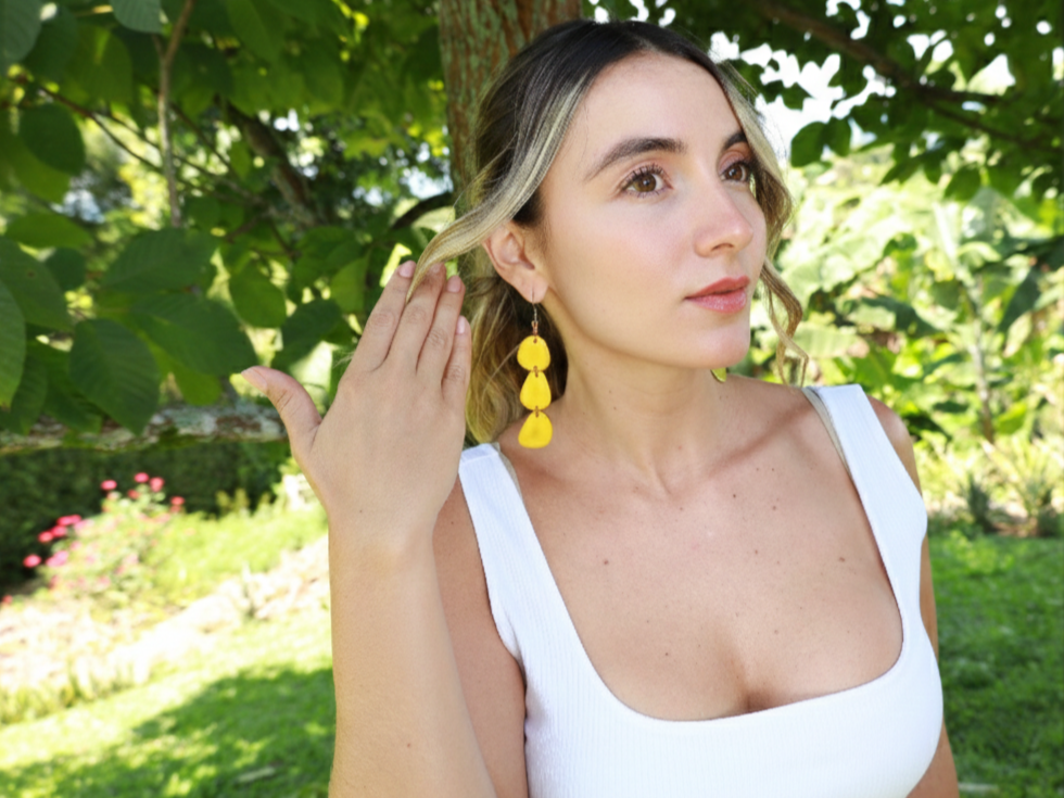 Her collections draw inspiration from the lush landscapes of the Amazon Basin and the luminous energy of South America’s tropical coastlines. Organic forms, rich textures, and vivid hues evoke the essence of rainforest canopies, ocean breezes, and golden sunsets, turning every design into a story of nature and craftsmanship.More than jewelry, these creations are wearable art — meaningful pieces that celebrate the earth, honor artisanal tradition, and reflect a genuine connection to Latin American roots